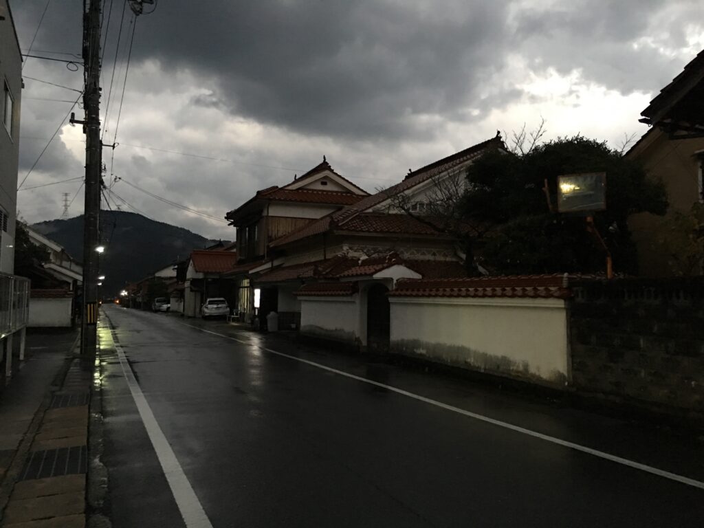 夜の闇と夕日に沈むように佇む古い街並みは、とても綺麗でした。